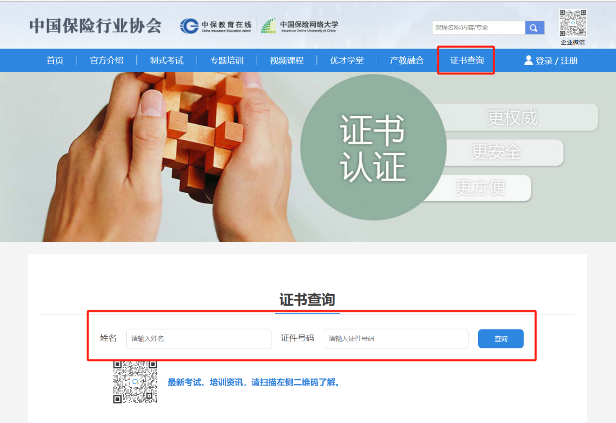二、考试成绩通过且符合发证条件的,电子证书生成时间为2025年11月14日,查询路径为:中保教育在线首页菜单栏--证书查询,输入姓名和证件号码进行查询、下载。